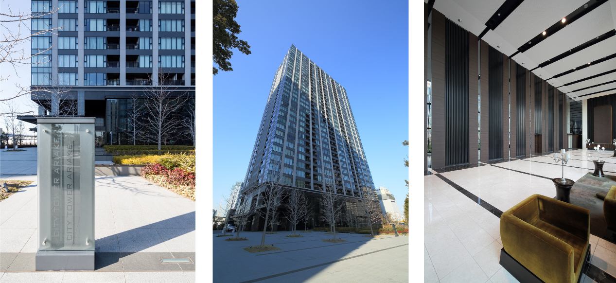 湾岸エリアの有明では2020年のオリンピックに向けて競技場や商業施設・集合住宅の建設が進められています。シティタワー有明は地上33階・総戸数483戸の大規模なタワーマンション。二層吹抜けのエントランスホールや落ち着きのある内廊下は、ホテルライクな快適性を実現している共用部空間だと言えるでしょう。