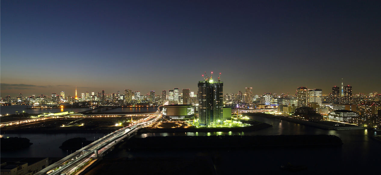 室内からトワイライトタイムに撮影した夜景になります。東京の高層マンションの中でも、これだけのダイナミックで美しい夜景が見れる住戸は希少だと思います。