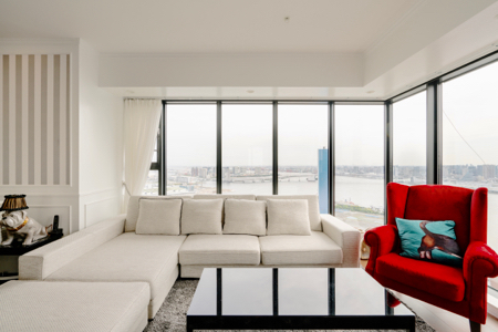中央区晴海、地上50階からのダイナミックな眺望です。この見晴らしの良さが、超高層マンションに住まう一番の贅沢かもしれません。