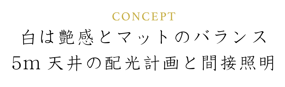 天井高5mを超えるリビングの照明計画は、光の配光に注意をして器具の選定を行いました。また梁が露出するキッチンには間接照明を造作することで、光の演出性だけではなく空間のデザイン性を高める試みとなっています。